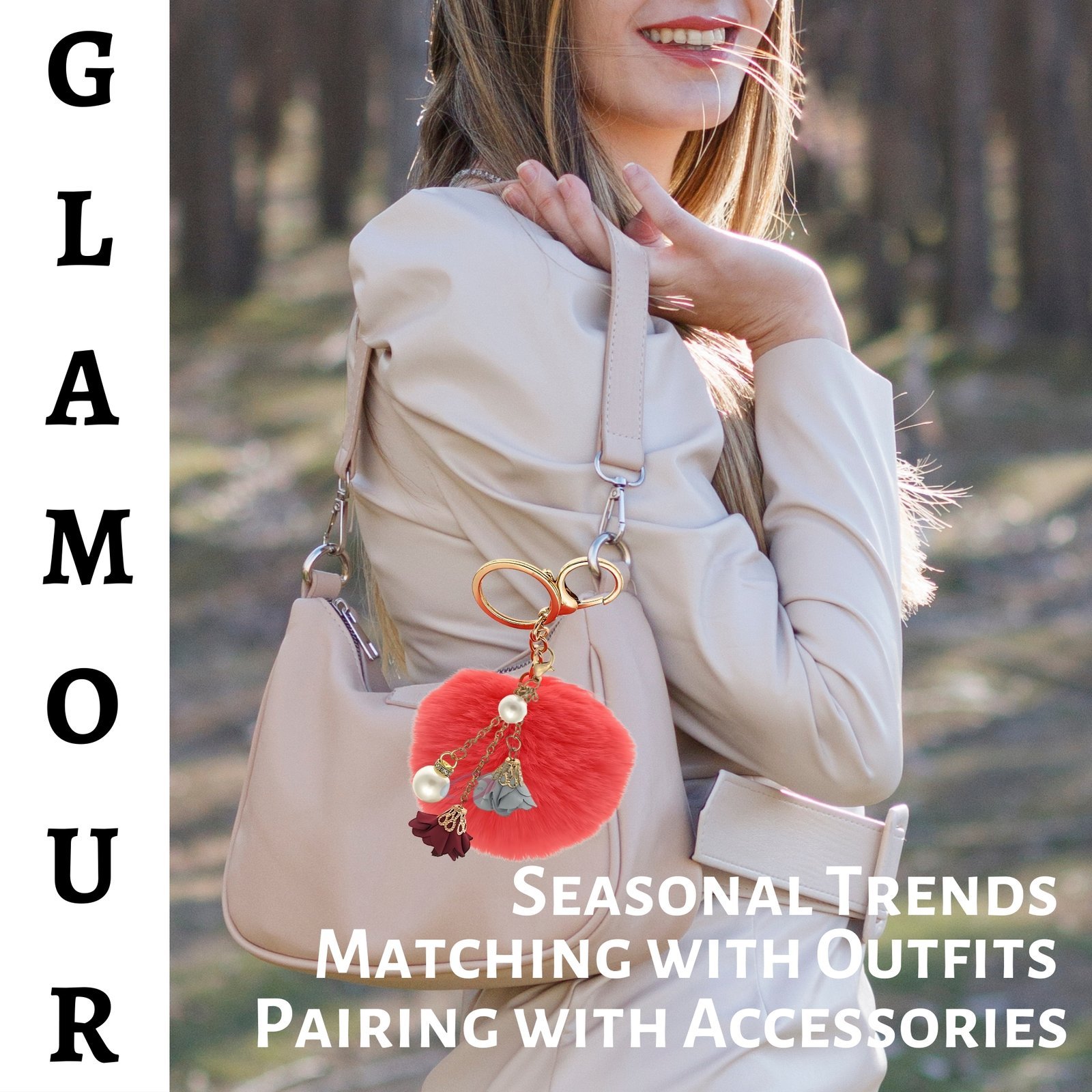 Soft Glamour: The Coral Pom Pom Charm with Twin Roses