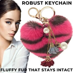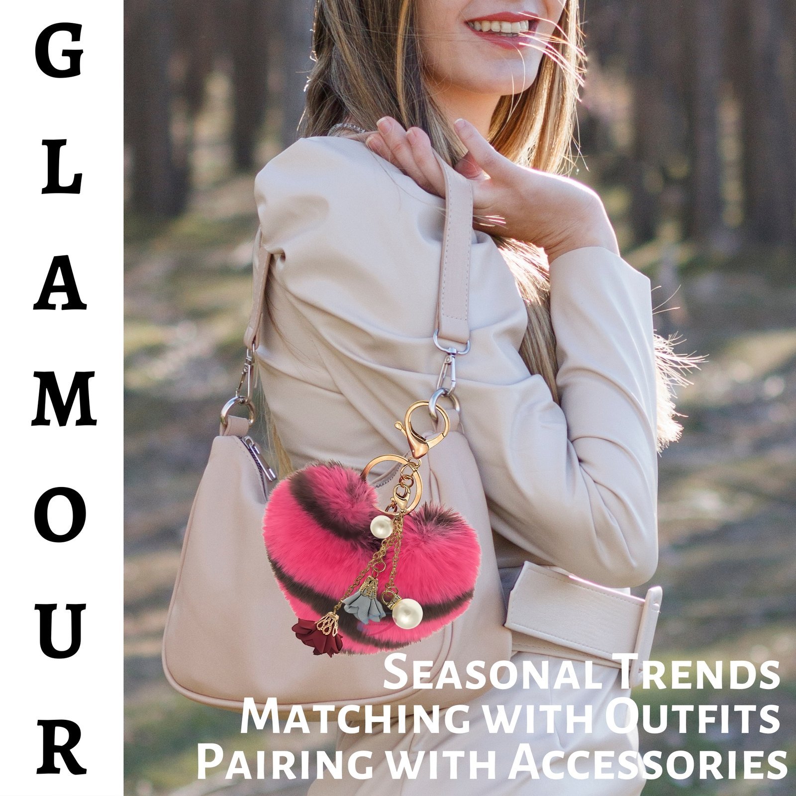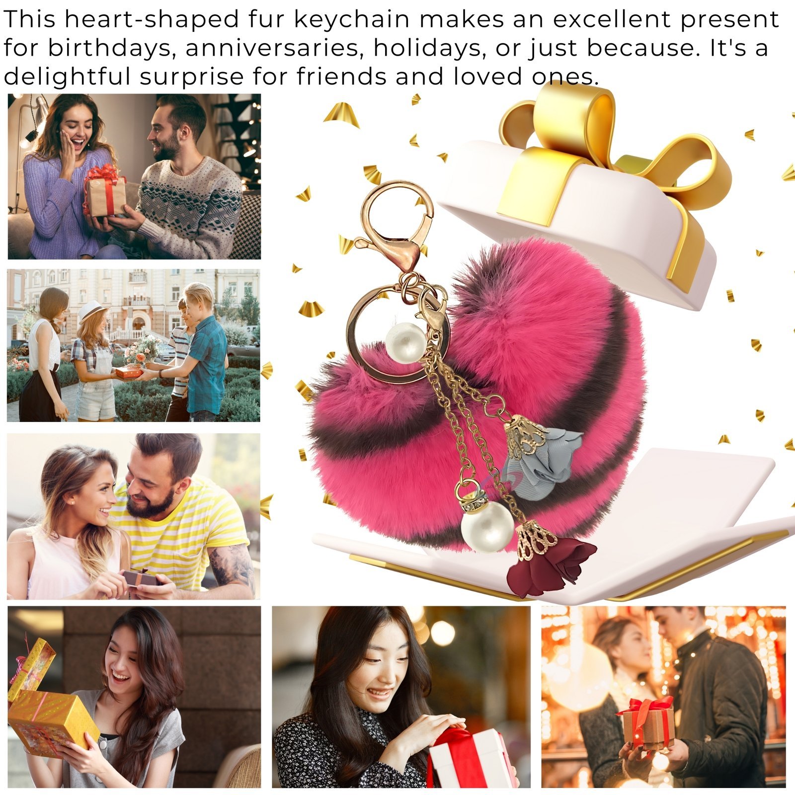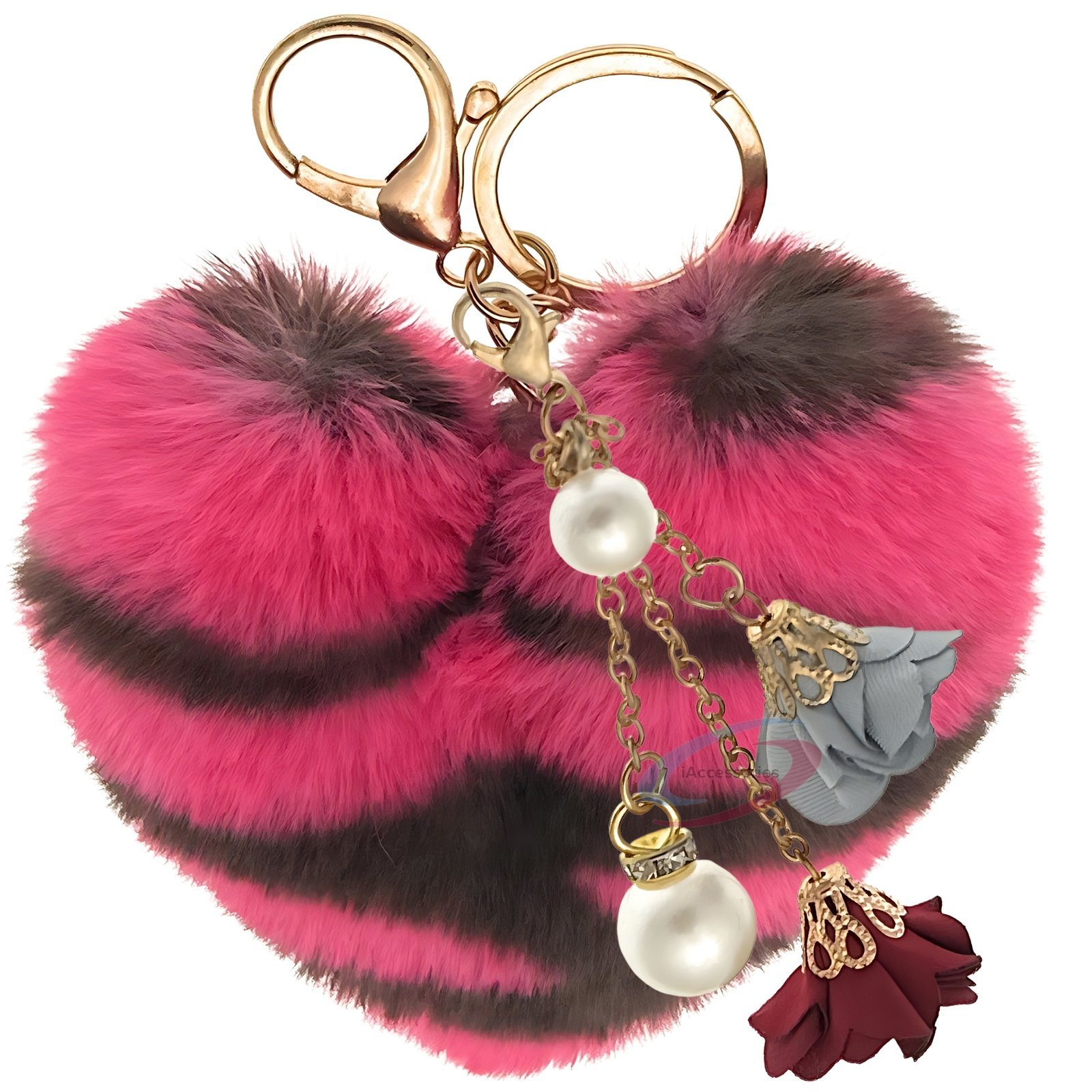 Add a touch of **vibrance and fun** to your everyday essentials with the **iAccessories Fluffy Faux Fur Pearl Roses Pom Pom Heart Keychain Charm**.