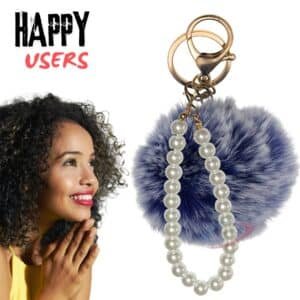 iAccessories Fluffy Faux Fur Pompom Keychain with Pearls