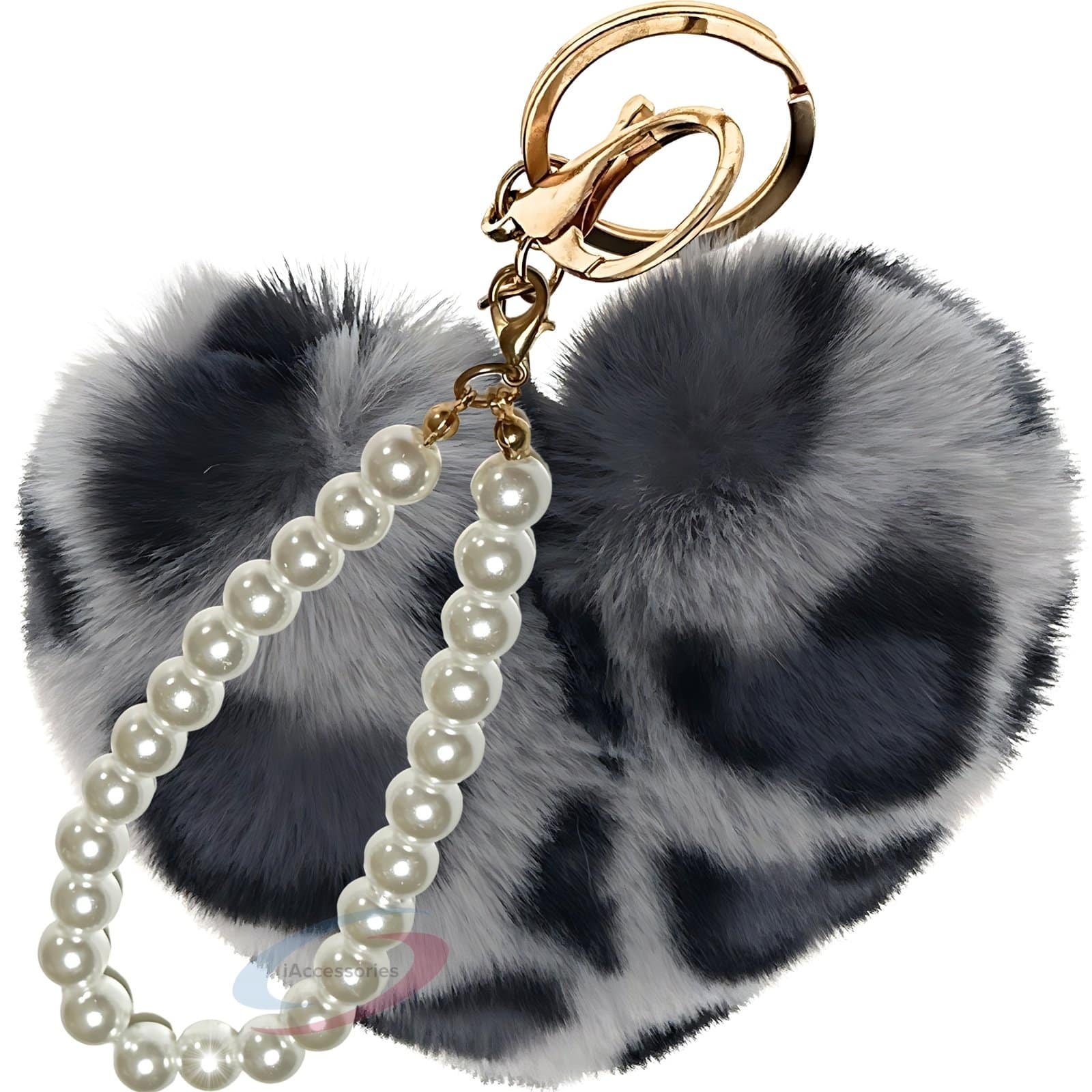 iAccessories Fluffy Faux Fur Heart Keychain with Pearls