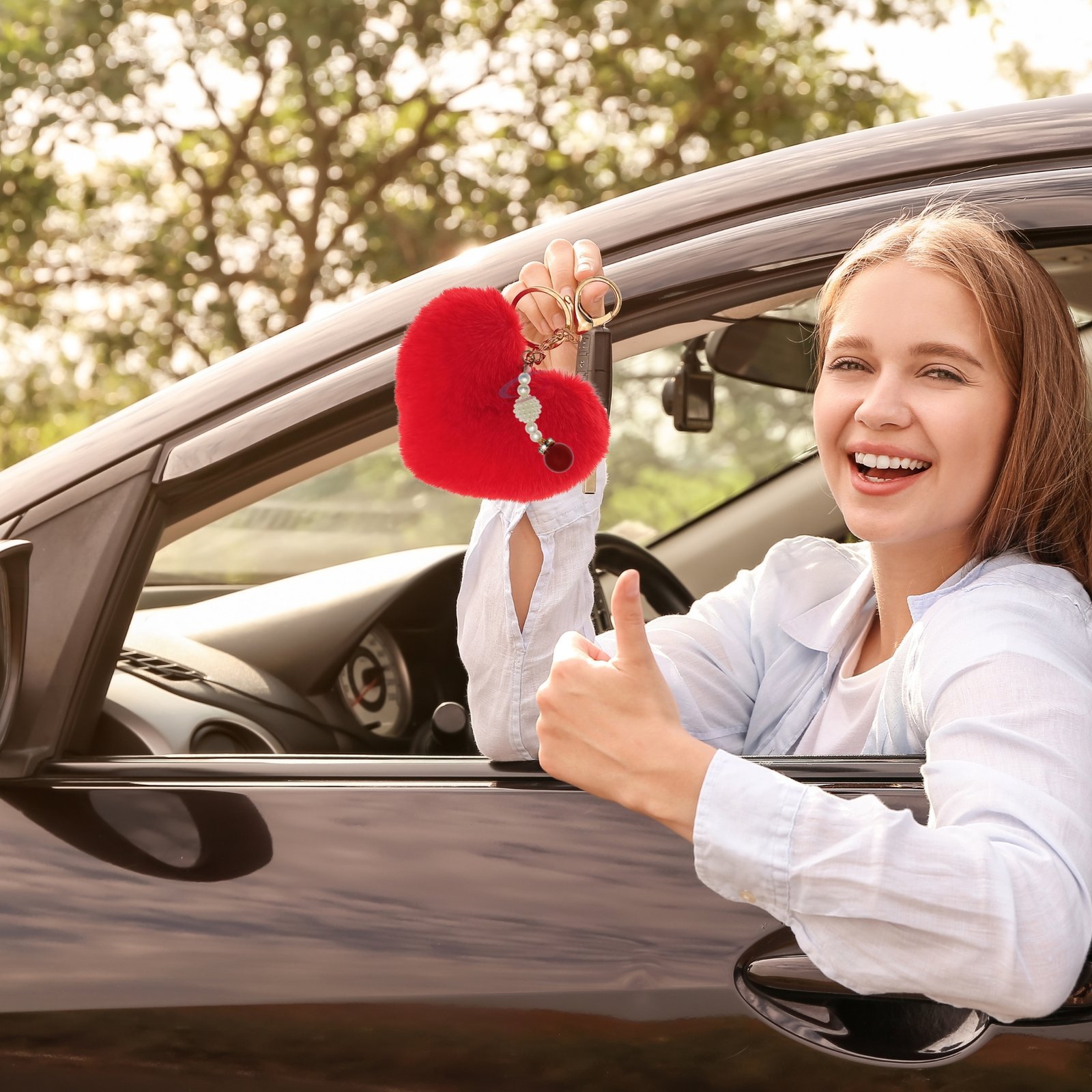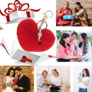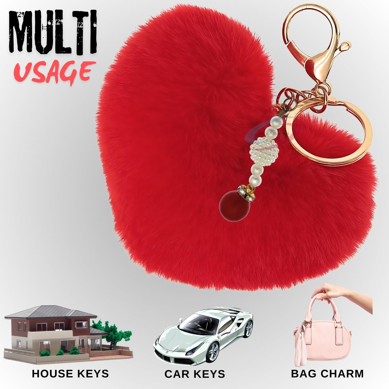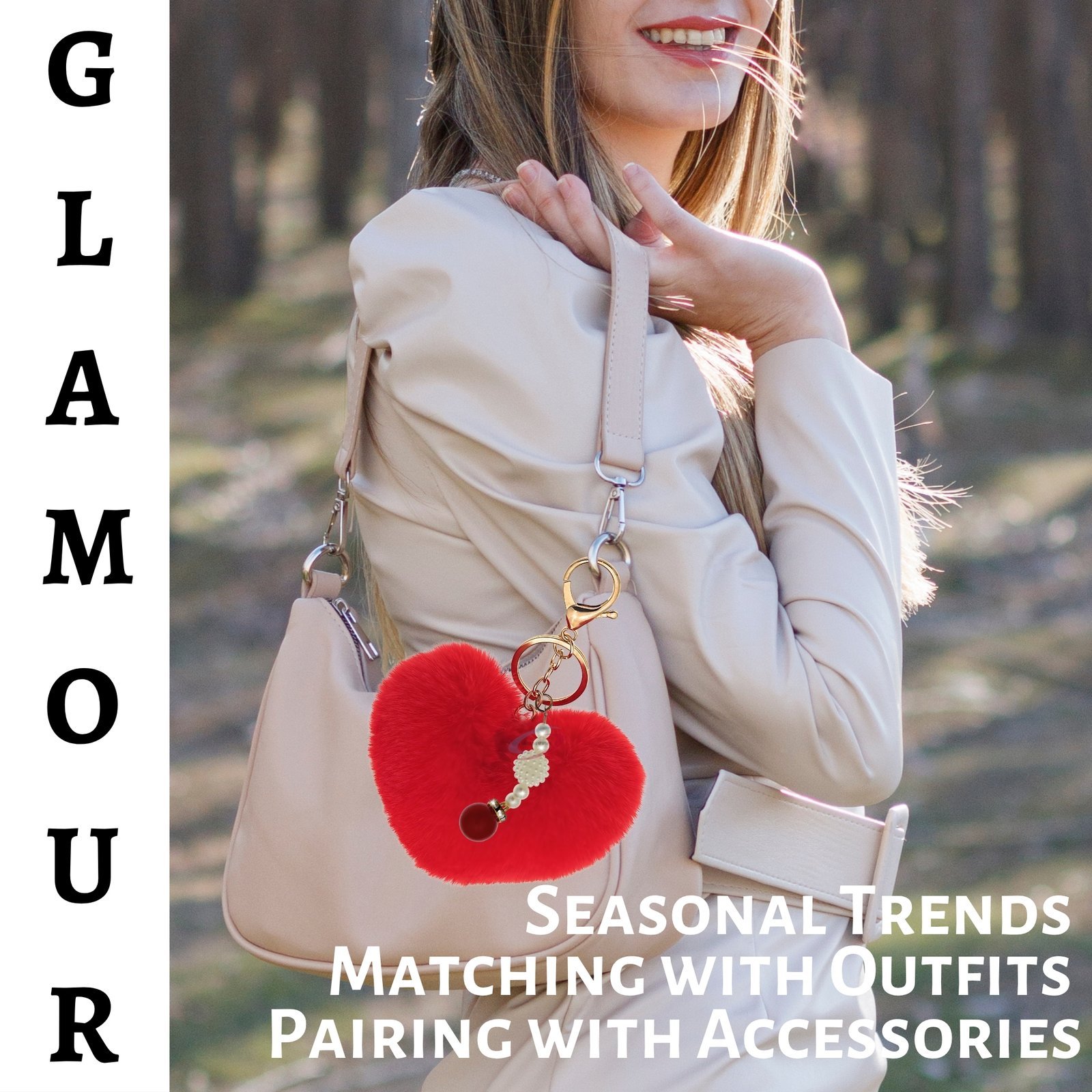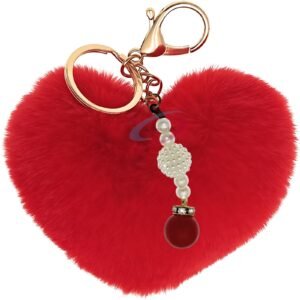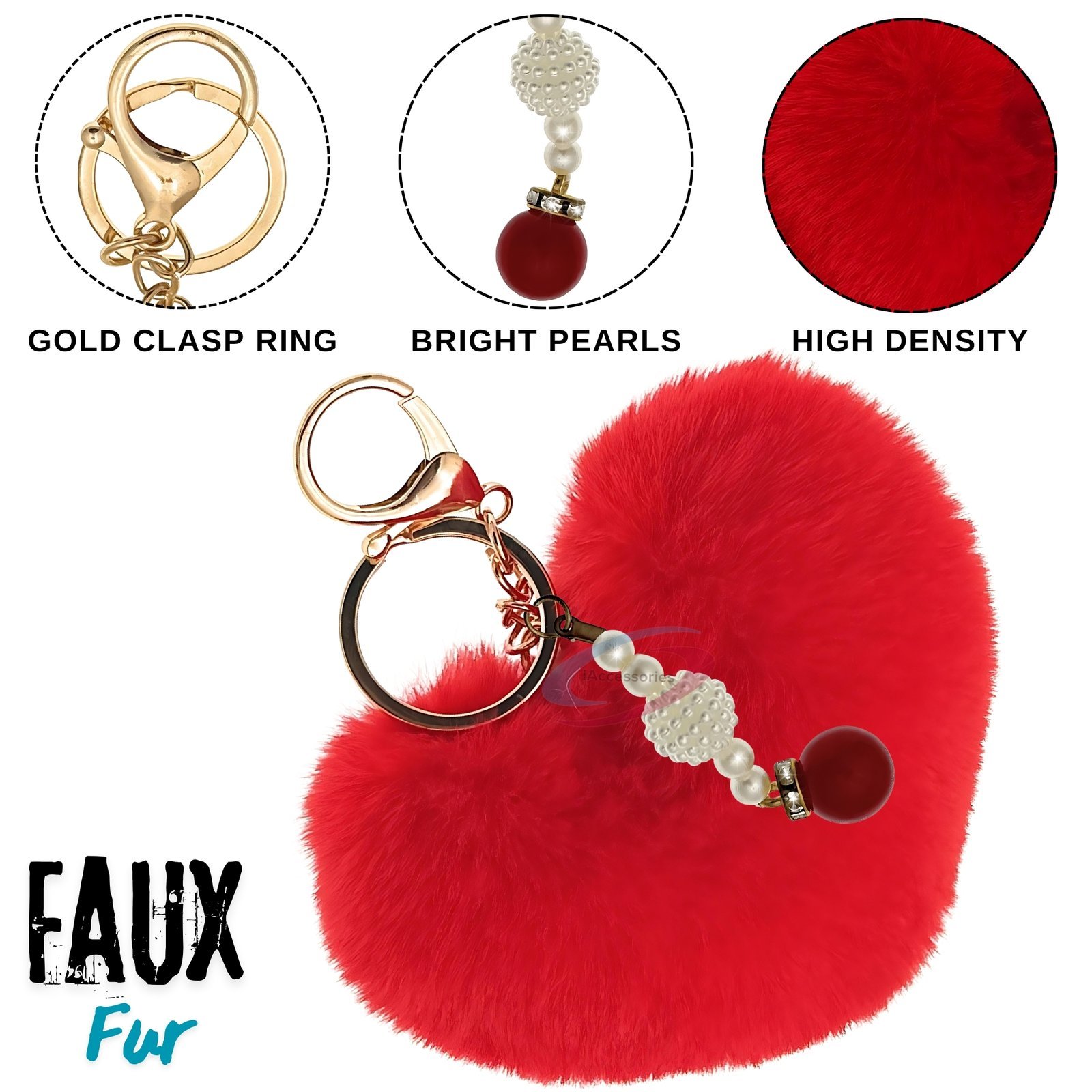 - Elegant Design: Features a soft, heart-shaped faux fur pompom in a striking red color, paired with a delicate pearl pendant.