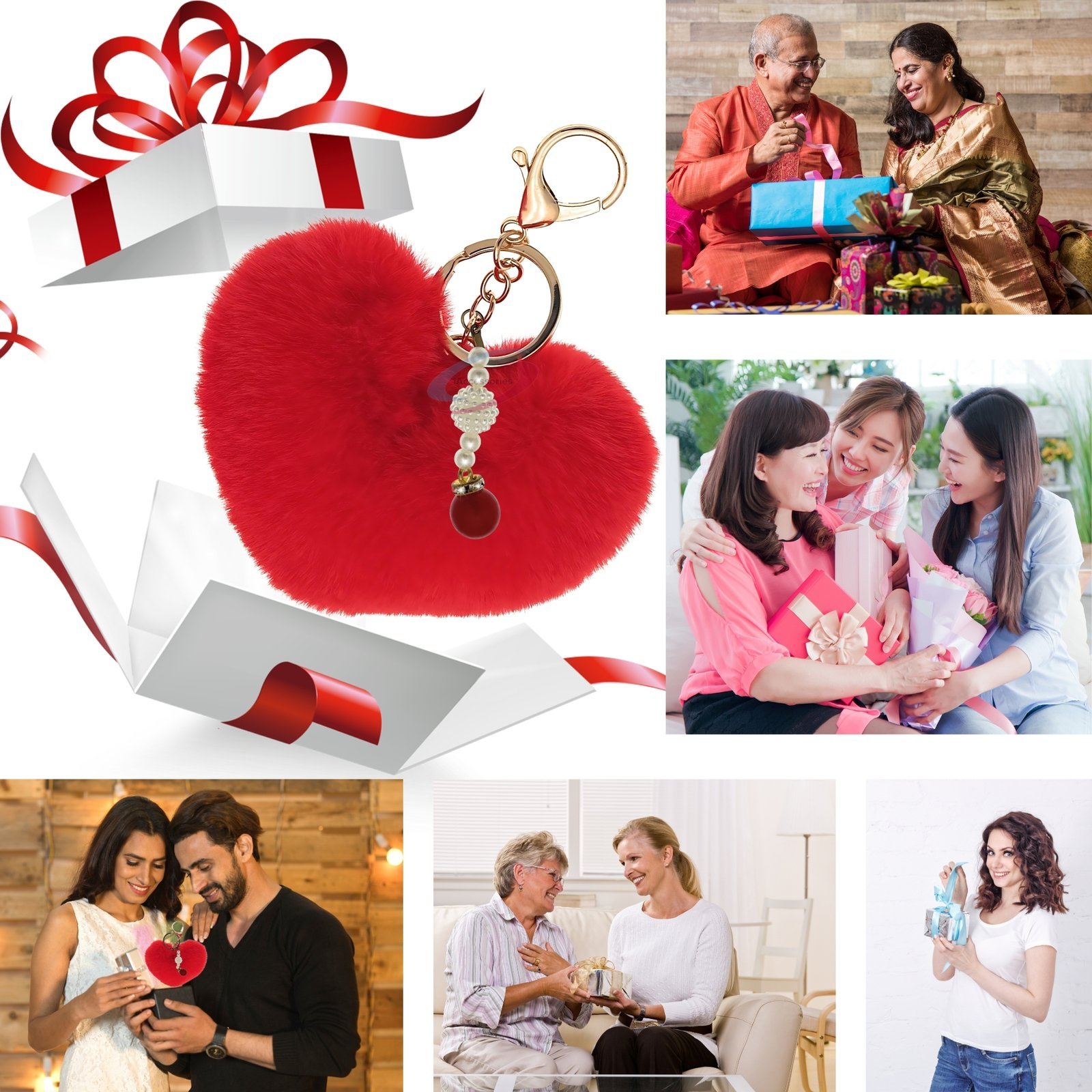 Add a touch of elegance and charm to your everyday essentials with the iAccessories Soft Faux Fur Pompom Heart Keychain with Pearl Pendant in Red. This delightful keychain features a plush, heart-shaped faux fur pompom in a vibrant red hue, adorned with a sophisticated pearl pendant. Perfect for accessorizing bags, purses, wallets, and keys, this keychain is both stylish and practical. Its soft texture and elegant design make it a must-have accessory for anyone looking to add a fashionable flair to their belongings. Ideal as a gift for girls and women who love a blend of chic and playful accessories.
