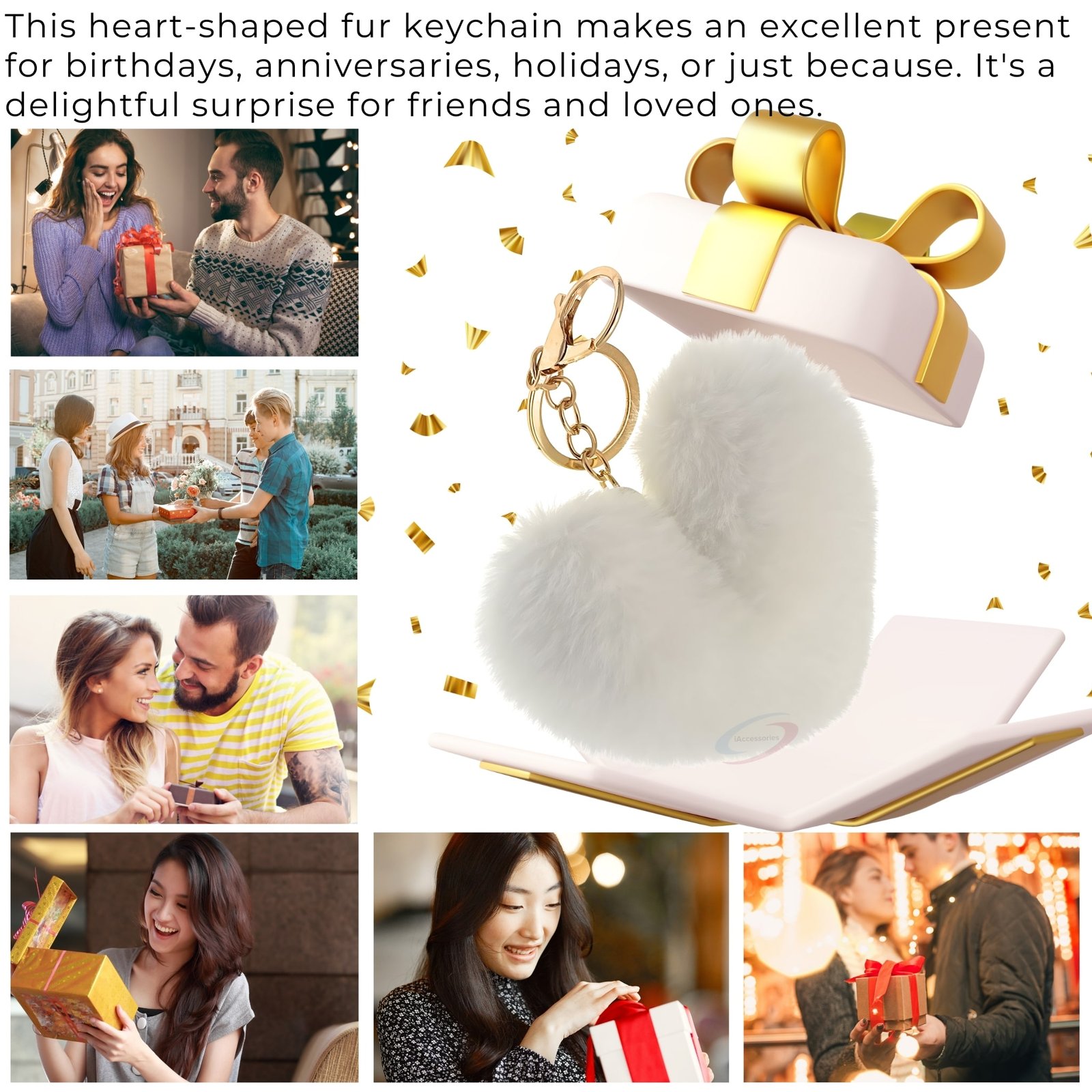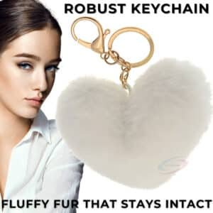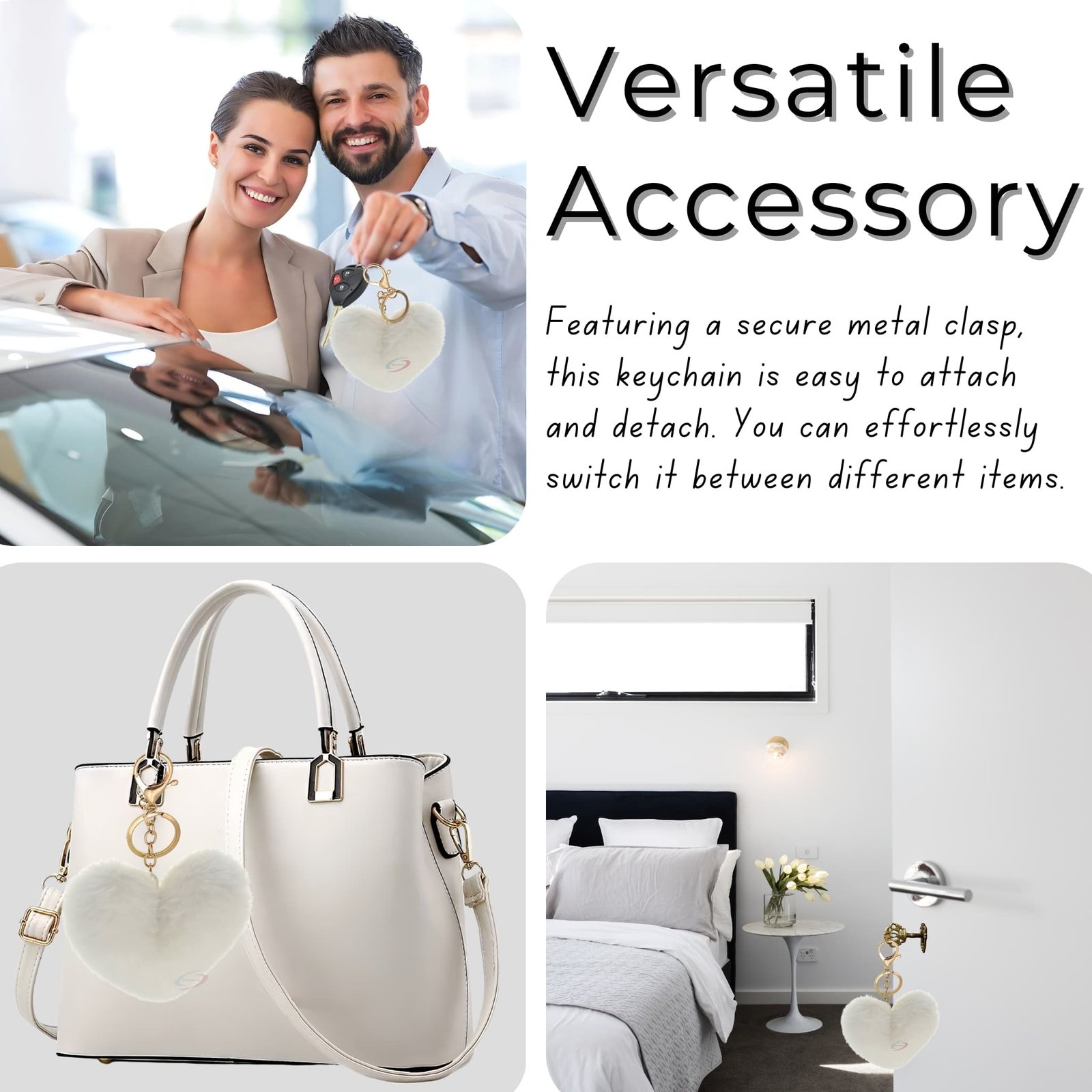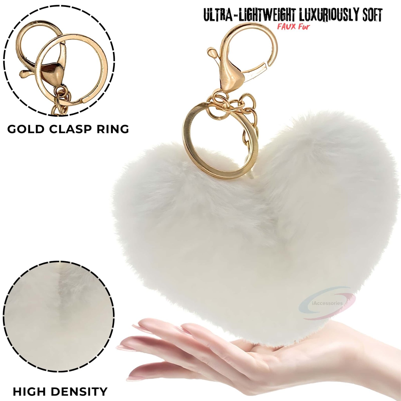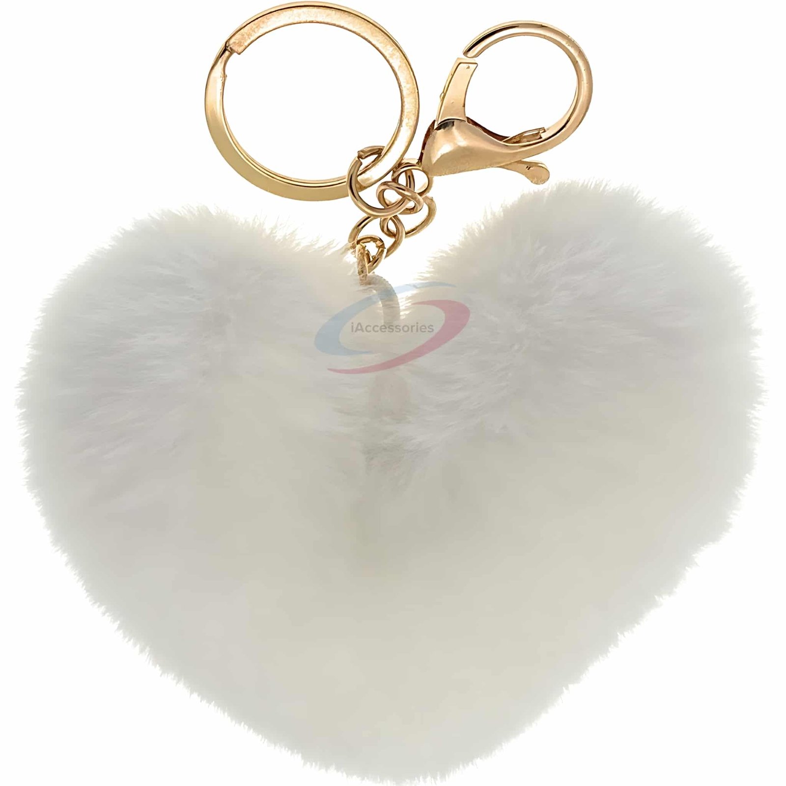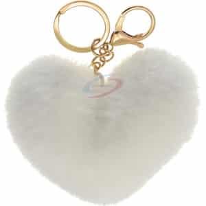 Enhance your accessories with this soft, white faux fur heart key ring. A minimalist and elegant touch for any bag or key set.