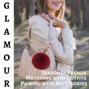 Add a rich and elegant accent to your everyday essentials with the iAccessories Fluffy Faux Fur Pom Pom Ball Key Ring – Wine Red.